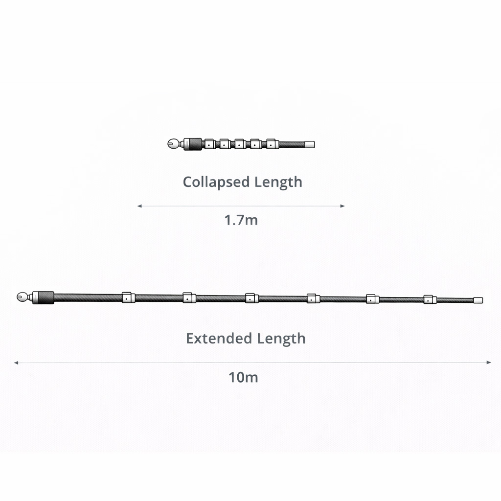 Lightweight carbon fibre pole that extends from 1.7 to 10m, fitted with a Seeker Pole Mount. No extra mount needed.