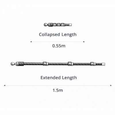 Extending from 55cm to 1.5m, it is ideal for travel, kayaks, and small boat setups where space is limited but controlled reach is still needed. The compact collapsed size makes it easy to pack into hand luggage or store onboard. Weighing just 500g, it keeps your setup light and easy to handle.