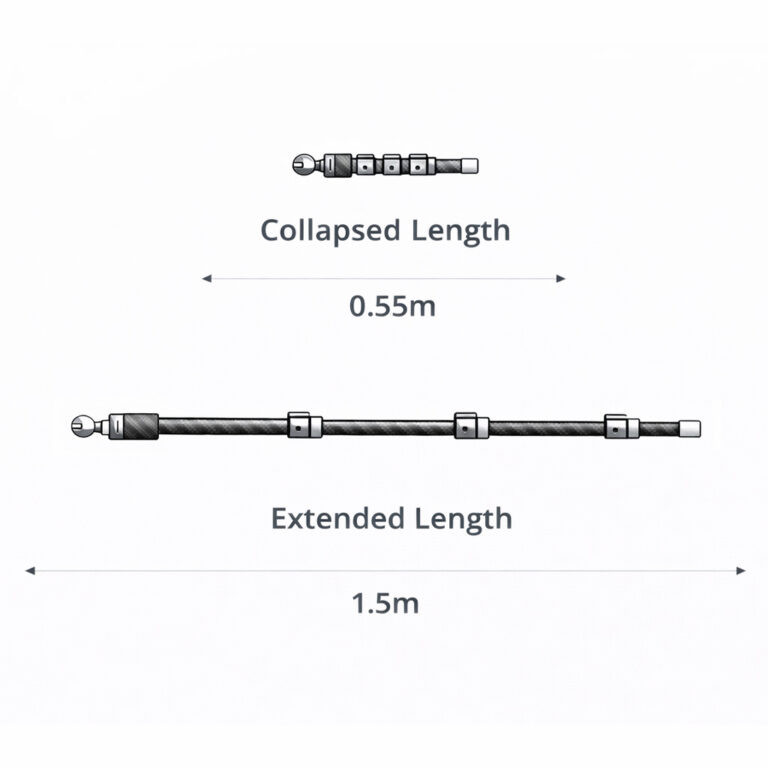 The 4 section telescopic design allows smooth extension and compact storage, making it easy to adjust your reach depending on the situation. Each section can be adjusted independently, allowing you to set the exact length needed for your setup.