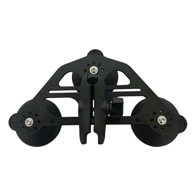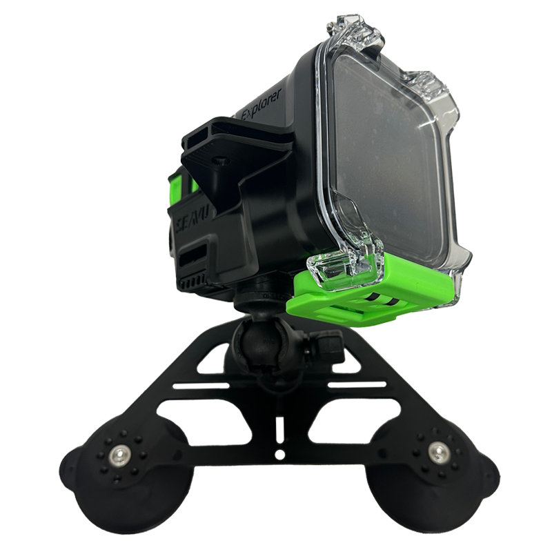 Triple suction mount with full-angle adjustment. Grips rough or smooth surfaces underwater.