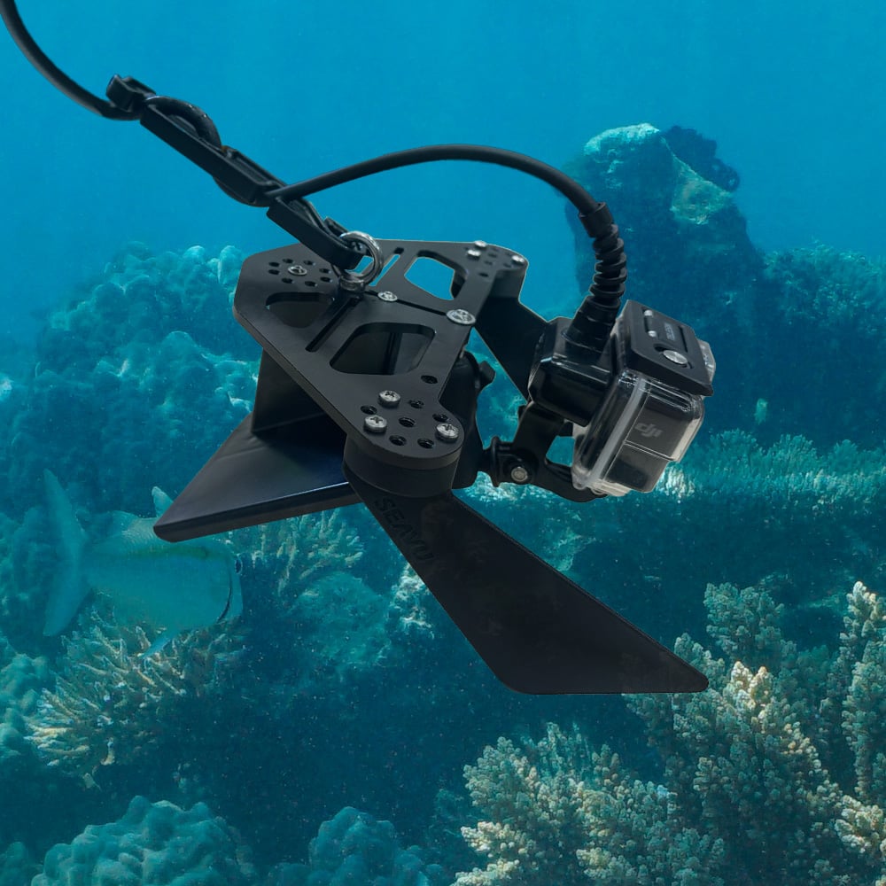 Built for precise observation while in motion, the DeepScope Rig performs best at towing speeds of up to 3 knots, giving you smooth, detailed footage of reefs, seagrass beds, and marine life from a range of adjustable angles โ up, down, front, or back. Add optional Seavu Video Lights to illuminate darker environments and capture clear, professional quality vision at depth.