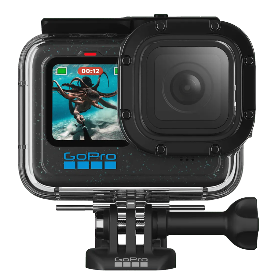 A GoPro waterproof case, also called a housing, is a sealed enclosure that protects the camera underwater.
